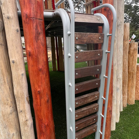 Stern Grove playground compliments the historic and natural aesthetic of the park’s tall tree canopies with play structures resembling primitive tree houses in a forested wonderland. The site work and play equipment highlight the use of natural materials such as Robinia, Cedar, Brazilian wood and boulders.