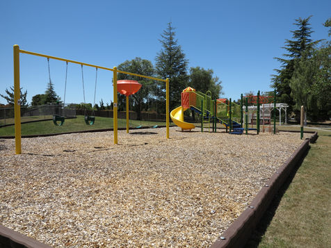 This is a vibrant play structure for the World Marine HOA community. The equipment includes a Miracle Recreation play structure along with UPC hop rocks and belt and tot swings.