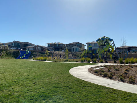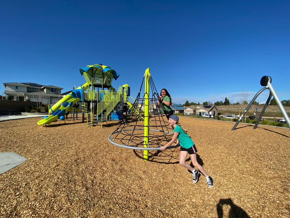 Saratoga Park is the first park installed in the newly developed Saratoga Estates. Elliott Homes is the developer of this exclusive gated community in El Dorado Hills. The developer and El Dorado CSD brought in Fuhrman Leamy Landscape Architects and Miracle Playsystems to design and install this one of a kind, turn-key park. There are many large, eye-catching pieces such as the Mega Tower play structure in the heart of the playground, a Mantis Zipline and the coolest wavy hill-slide at the far corner. Kids scramble up the hill on either side and slide down the slide while having the time of their lives! The Mega Tower has multiple ways to climb and kids brave the heights to slide down one of the 3 steep slides. The Mantis zipline has a wait line a mile long. There is also an Accelerator swing which pushes the bar with how high you can fly! Finally, kids have fun spinning the day away on the Cyclo Cone Spinner. Kids come from all over the community to see the coolest playground around!